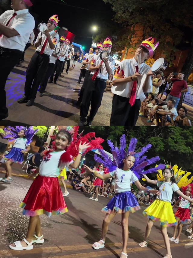 El desfile se desarrolló sobre la avenida principal y contó con la participación de distintas comparsas barriales que desplegaron creatividad y compromiso comunitario. Salgueiro, del barrio Henter, presentó “Héroes de Malvinas”; Candombe del Caribe, del barrio Malvinas, desfiló con “La Tierra Sin Mal”; Los Tigres, del barrio Belgrano, llevaron a escena “Intensamente: el carnaval de las emociones”; Basar, del barrio Sarmiento, recreó “La historia de la Isla Caraguatay”; y Copacabana, del barrio Guatambú, hizo vibrar al público con “Los Vaqueros”.